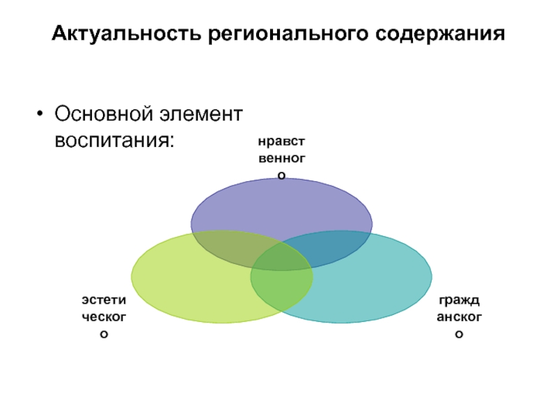Актуальность регионального содержанияОсновной элемент воспитания: