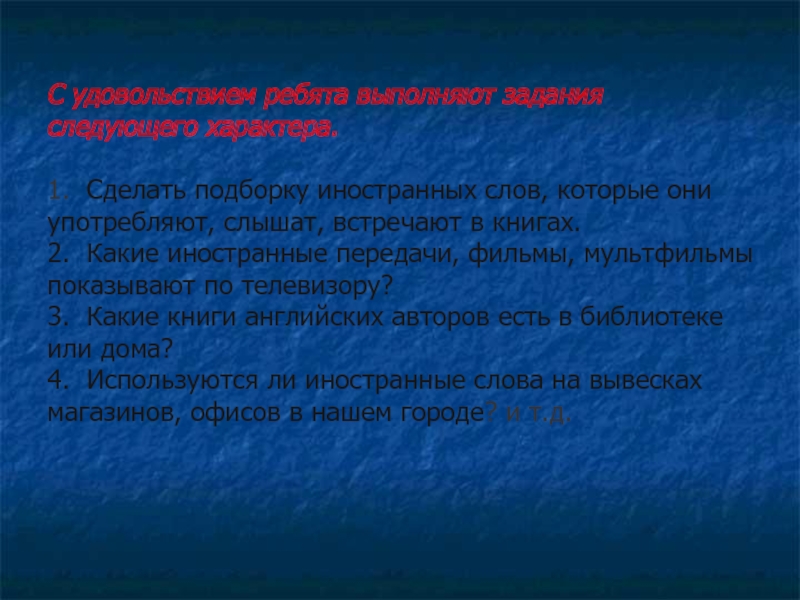 Слайд 7С удовольствием ребята выполняют задания следующего характера.