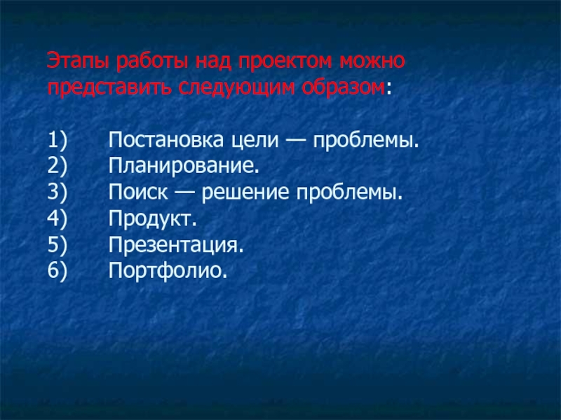 Слайд 16Этапы работы над проектом можно представить следующим образом:
