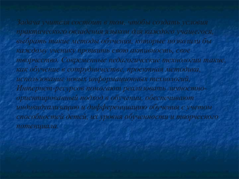 Слайд 2Задача учителя состоит в том, чтобы создать условия практического овладения языком