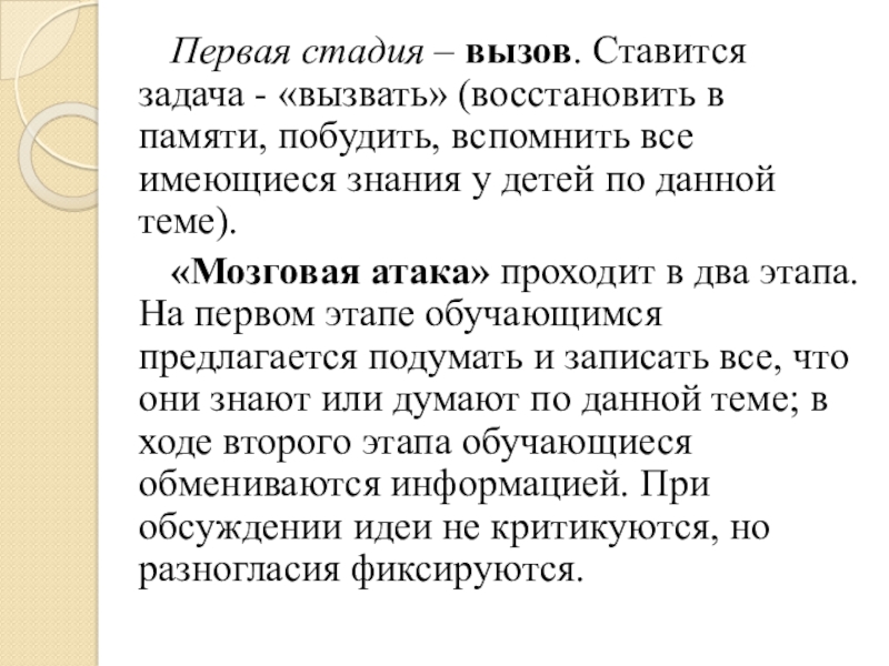 Слайд 9 Первая стадия – вызов. Ставится задача - «вызвать»