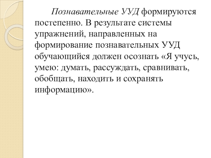 Слайд 15 Познавательные УУД формируются постепенно. В результате
