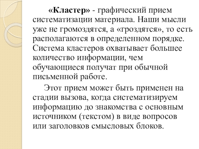 Слайд 10 «Кластер» - графический прием систематизации материала.