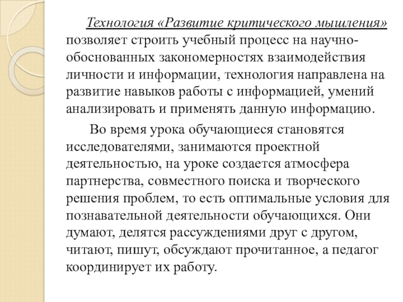 Слайд 7 Технология «Развитие критического мышления» позволяет строить