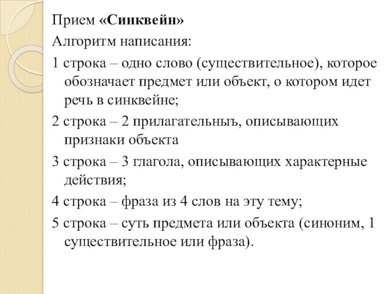 5 строка – суть предмета или объекта (синоним, 1 существительное или фраза).