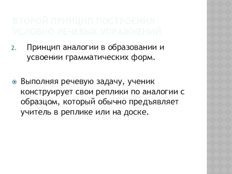 Слайд 6Второй принцип построения условно-речевых упражнений