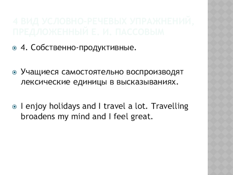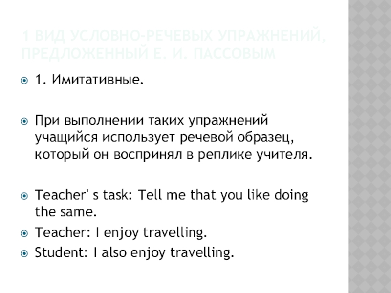 Слайд 124 вид условно-речевых упражнений, предложенный Е. И. Пассовым