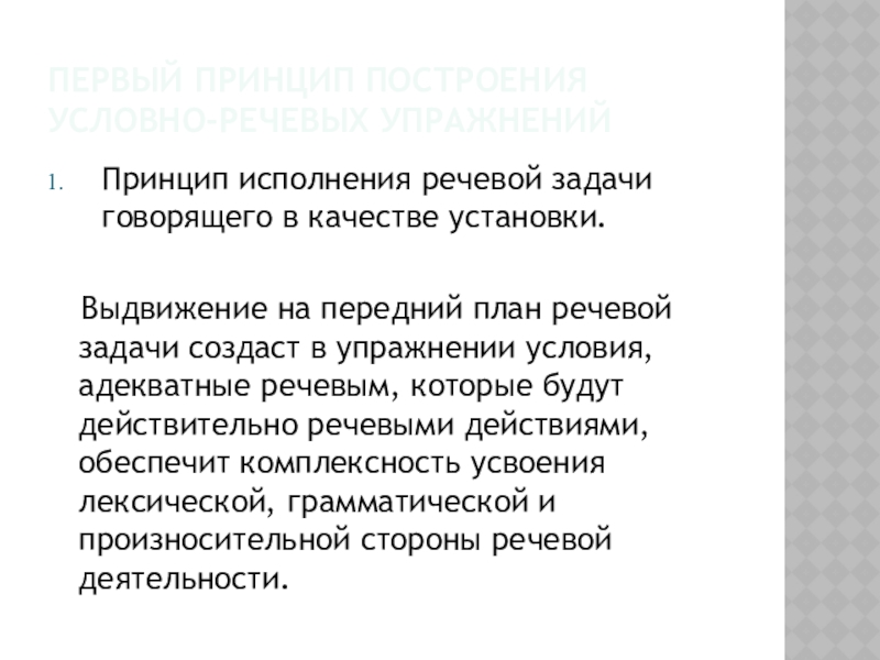 Слайд 3Первый принцип построения условно-речевых упражнений