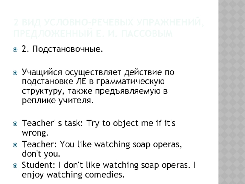 Слайд 91 вид условно-речевых упражнений, предложенный Е. И. Пассовым