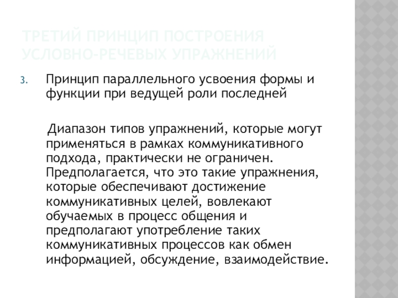 Слайд 7Третий принцип построения условно-речевых упражнений