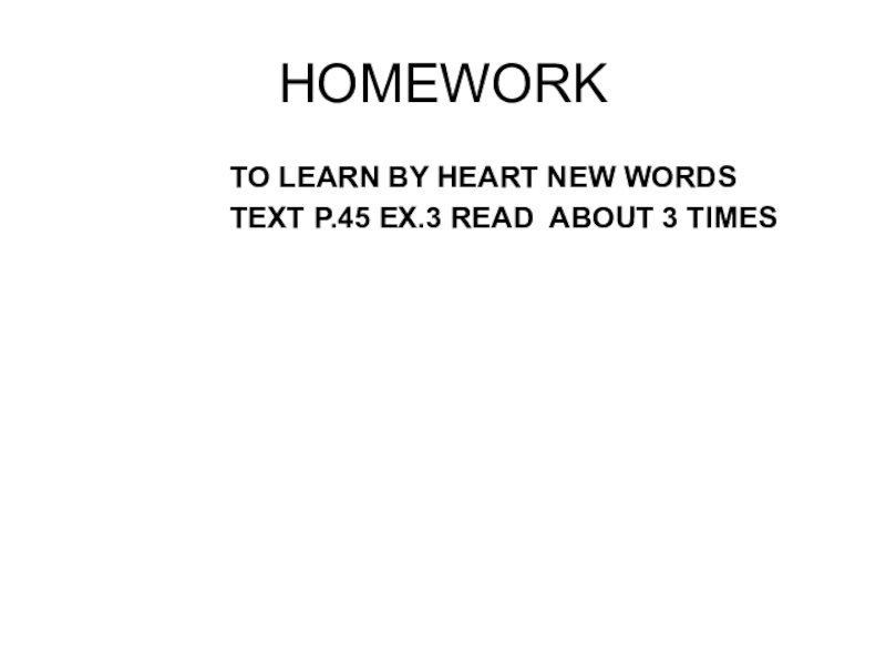 HOMEWORKTO LEARN BY HEART NEW WORDSTEXT P.45 EX.3 READ ABOUT 3 TIMES