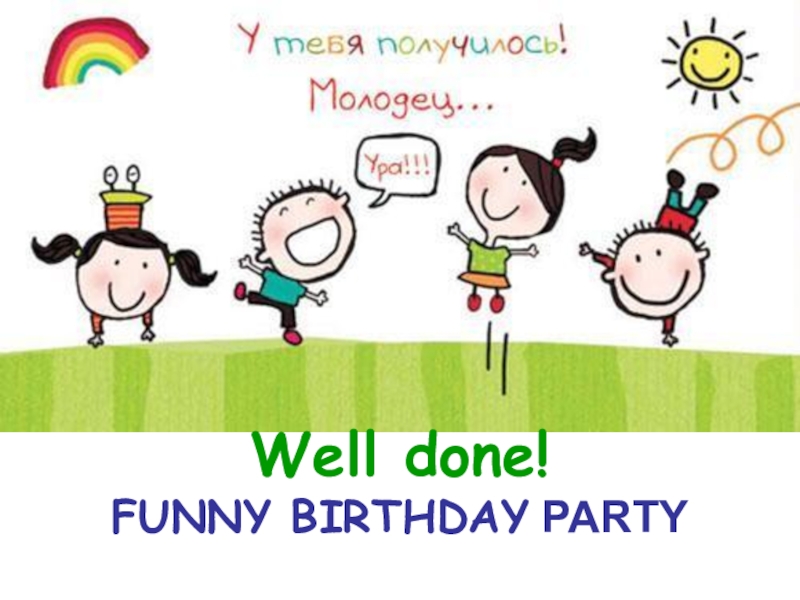Слайд 2Well done! FUNNY BIRTHDAY PARTY