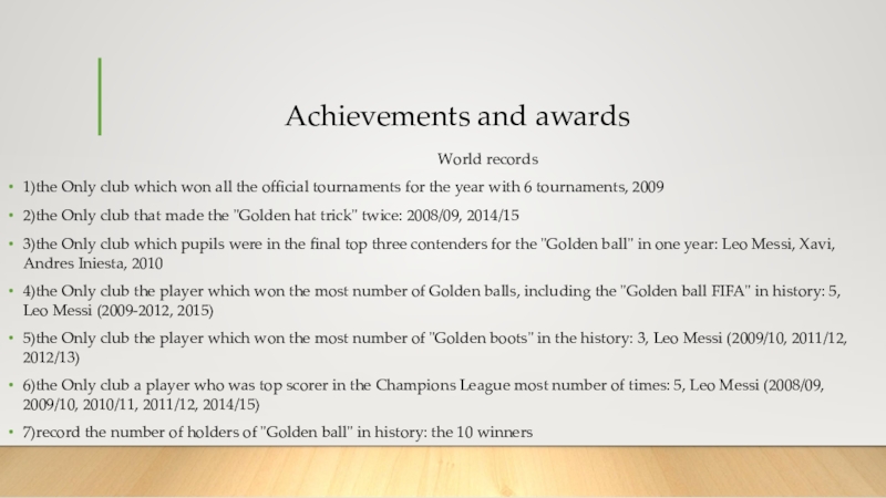 3)the Only club which pupils were in the final top three contenders for the "Golden ball" in one year: Leo Messi, Xavi, Andres Iniesta, 2010