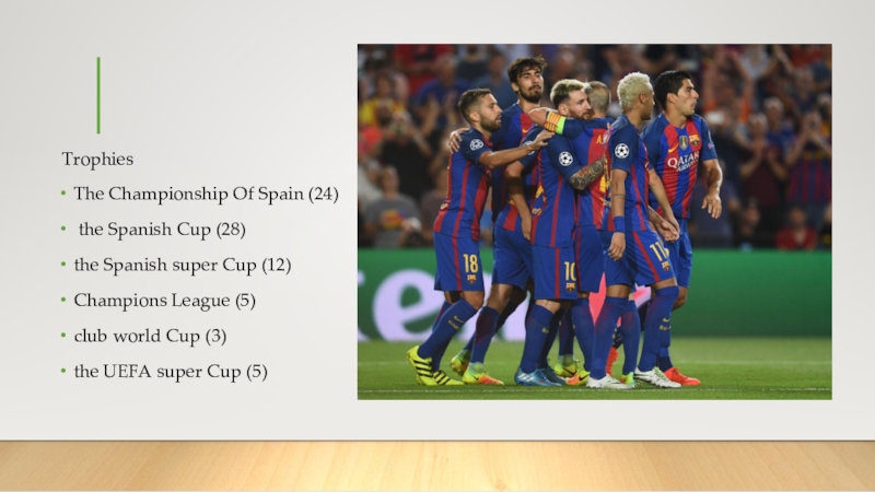 TrophiesThe Championship Of Spain (24) the Spanish Cup (28)the Spanish super Cup (12)Champions League (5)club world