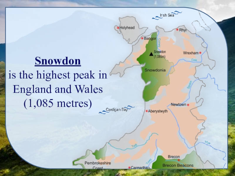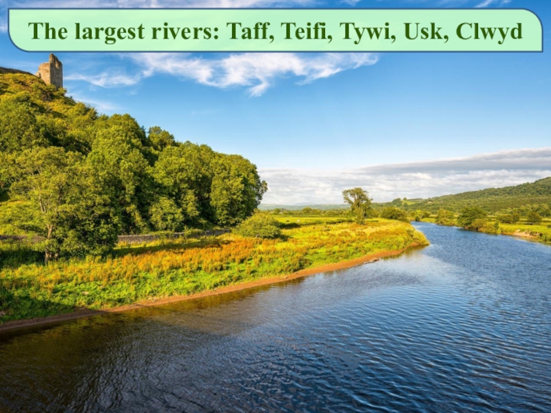 Слайд 11The largest rivers: Taff, Teifi, Tywi, Usk, Clwyd