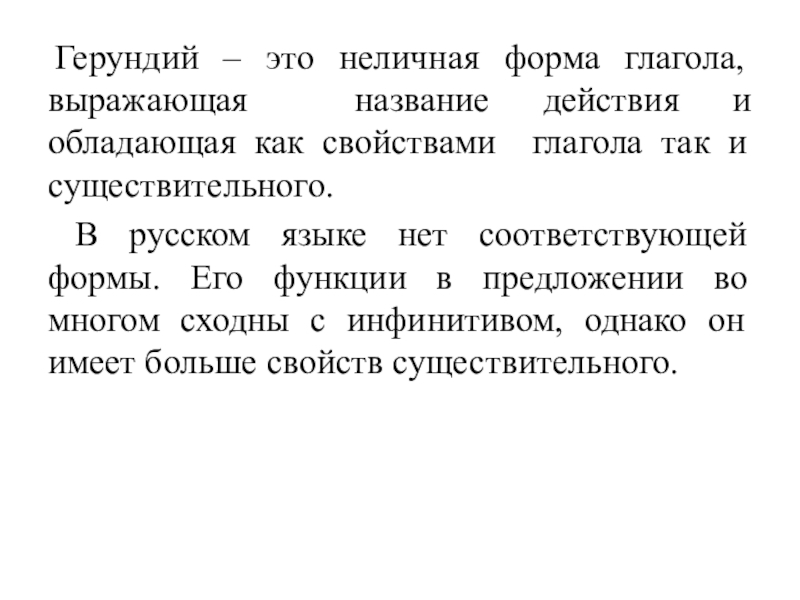 Слайд 2Герундий – это неличная форма глагола, выражающая название действия и обладающая