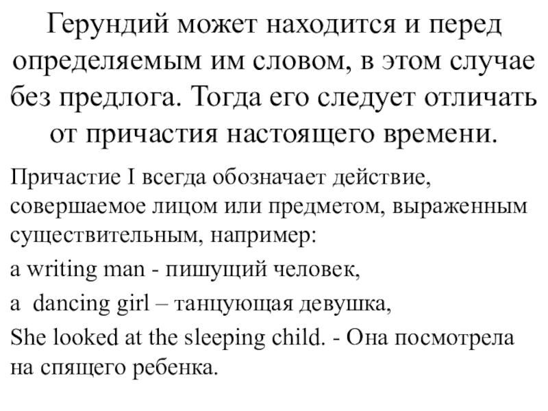 Слайд 41Герундий может находится и перед определяемым им словом, в этом случае