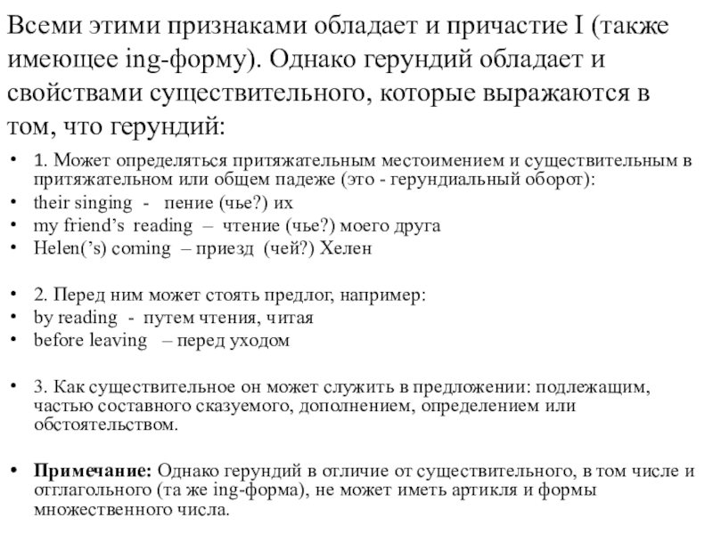 Слайд 4Всеми этими признаками обладает и причастие I (также имеющее ing-форму). Однако