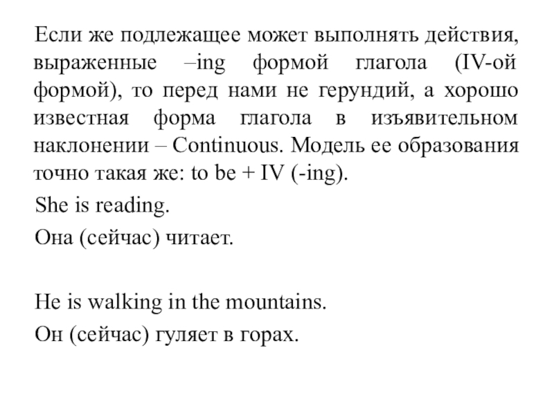 формой), то перед нами не герундий, а хорошо известная форма глагола в изъявительном наклонении – Continuous. Модель ее образования точно такая же: to be + IV (-ing).