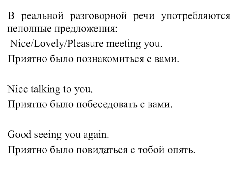 Приятно было познакомиться с вами. (при прощании)