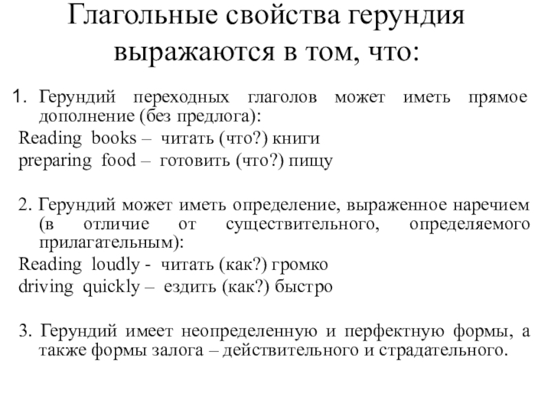 Слайд 3Глагольные свойства герундия выражаются в том, что:
