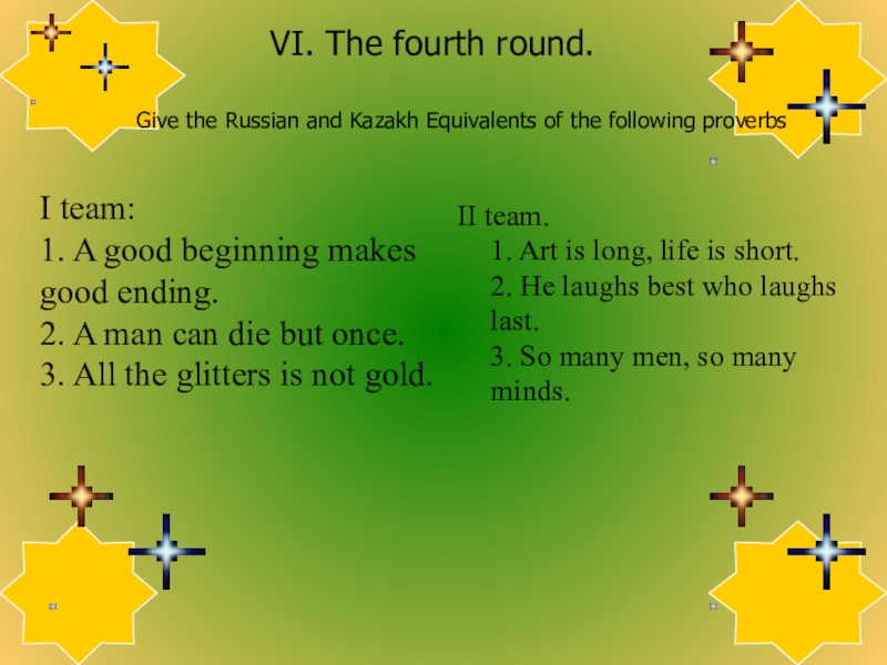 Give the Russian and Kazakh Equivalents of the following proverbs