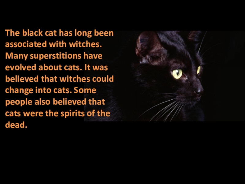 Слайд 15The black cat has long been associated with witches. Many superstitions
