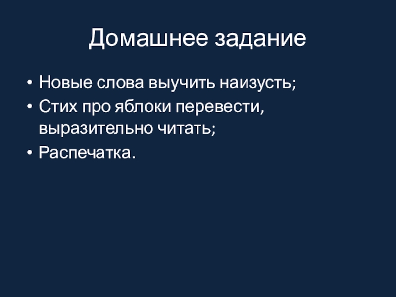 Новые слова выучить наизусть;