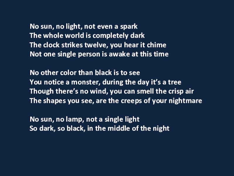 Слайд 5No sun, no light, not even a spark