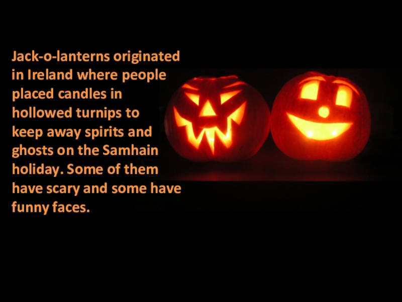 Слайд 16Jack-o-lanterns originated in Ireland where people placed candles in hollowed turnips