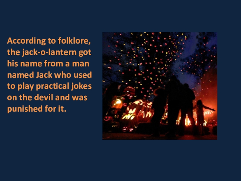 Слайд 17According to folklore, the jack-o-lantern got his name from a man
