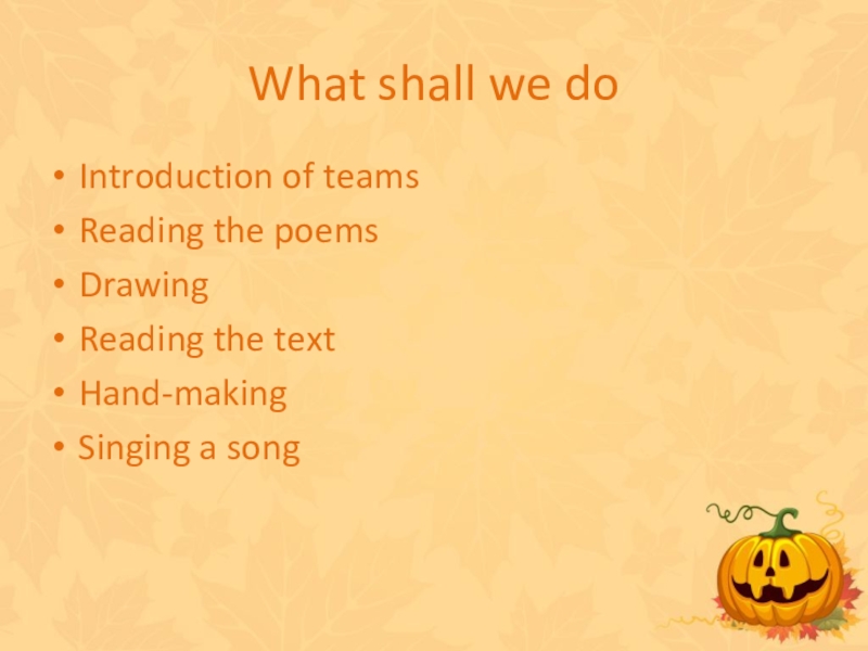 What shall we doIntroduction of teamsReading the poemsDrawingReading the textHand-makingSinging a song