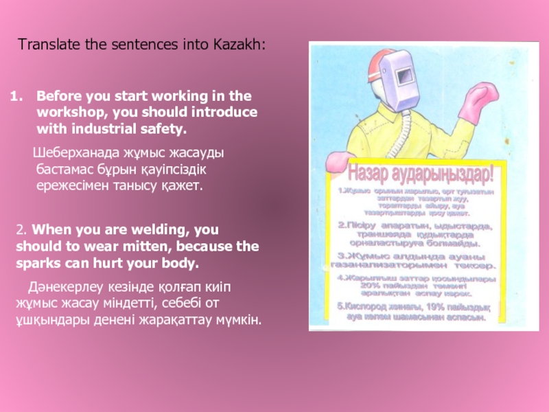 2. When you are welding, you should to wear mitten, because the sparks can hurt your body.