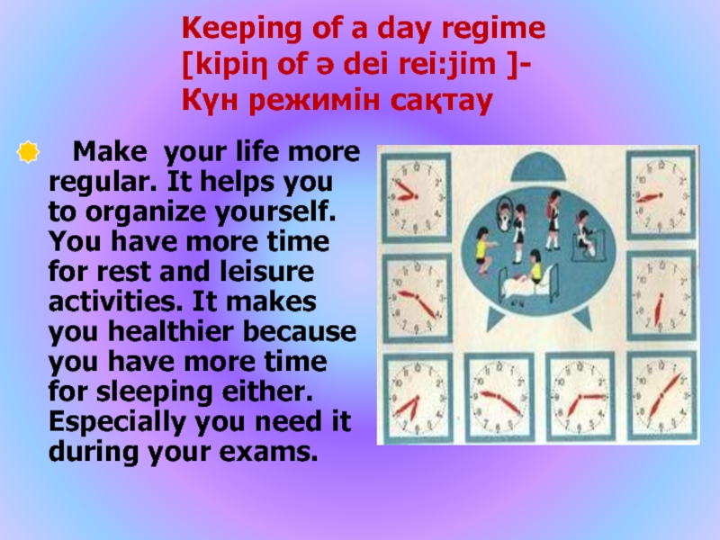 Make your life more regular. It helps you to organize yourself. You have more time for rest and leisure activities. It makes you healthier because you have more time for sleeping either. Especially you need it during your exams.