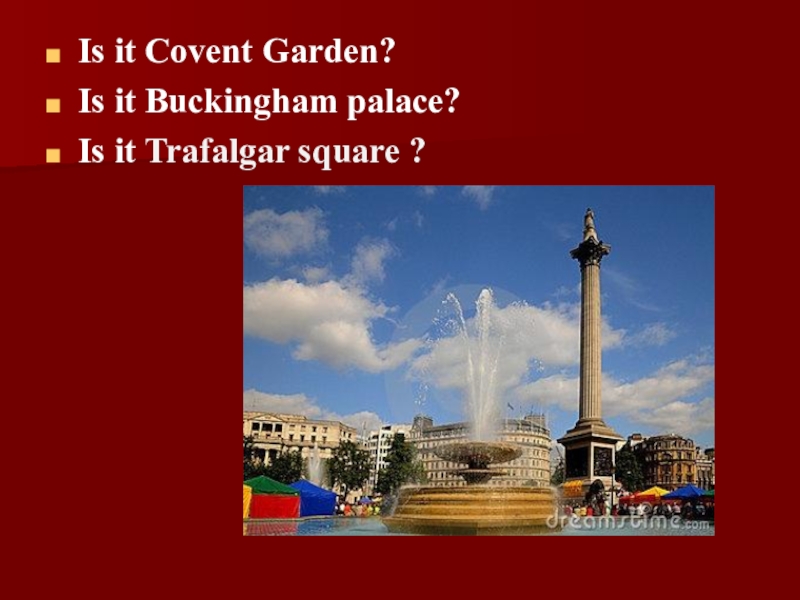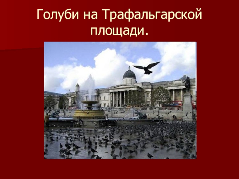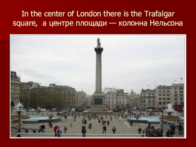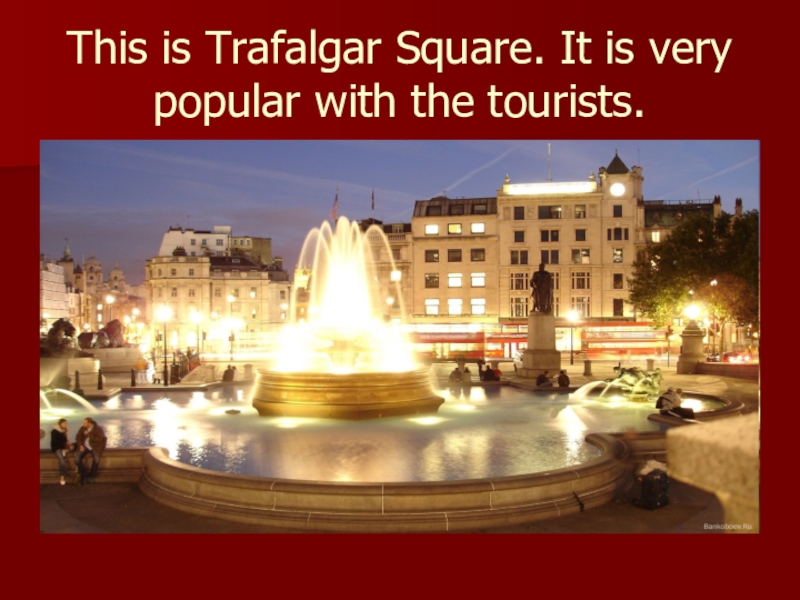 Слайд 13This is Trafalgar Square. It is very popular with the tourists.