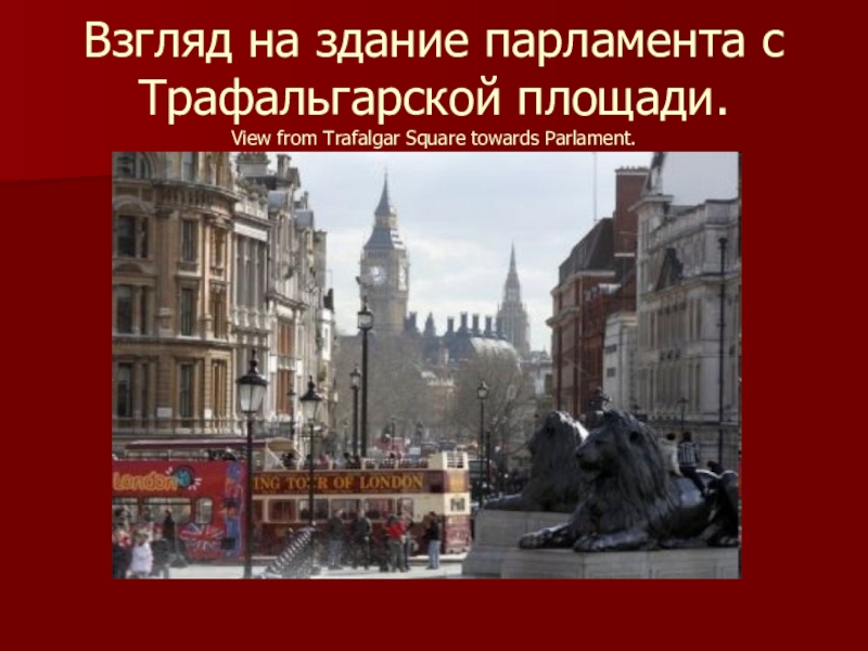 Слайд 19Взгляд на здание парламента с Трафальгарской площади.