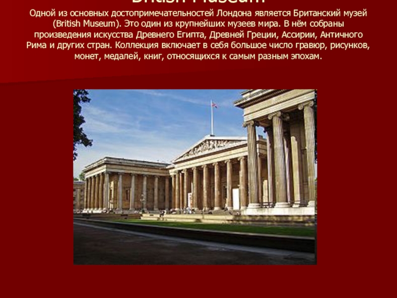 Одной из основных достопримечательностей Лондона является Британский музей (British