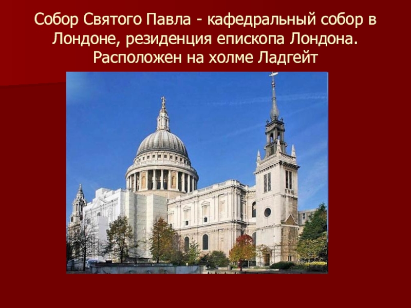 Слайд 49Собор Святого Павла - кафедральный собор в Лондоне, резиденция епископа Лондона.