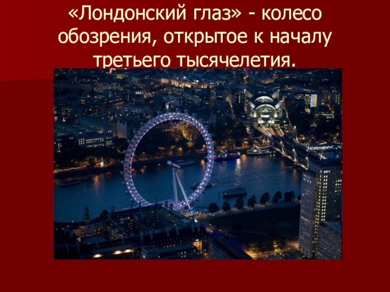 Слайд 41«Лондонский глаз» - колесо обозрения, открытое к началу третьего тысячелетия.