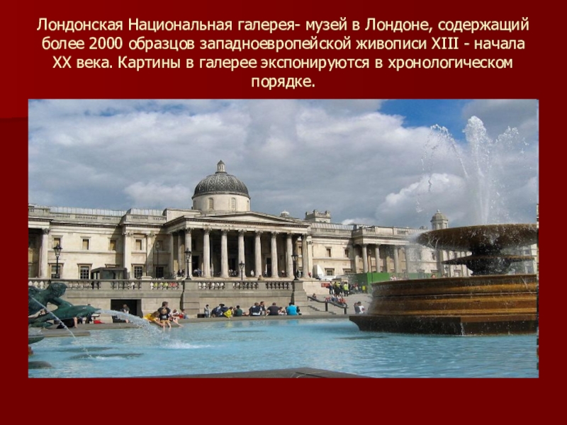 Слайд 47Лондонская Национальная галерея- музей в Лондоне, содержащий более 2000 образцов западноевропейской