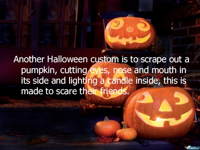 Слайд 25Another Halloween custom is to scrape out a pumpkin, cutting eyes,