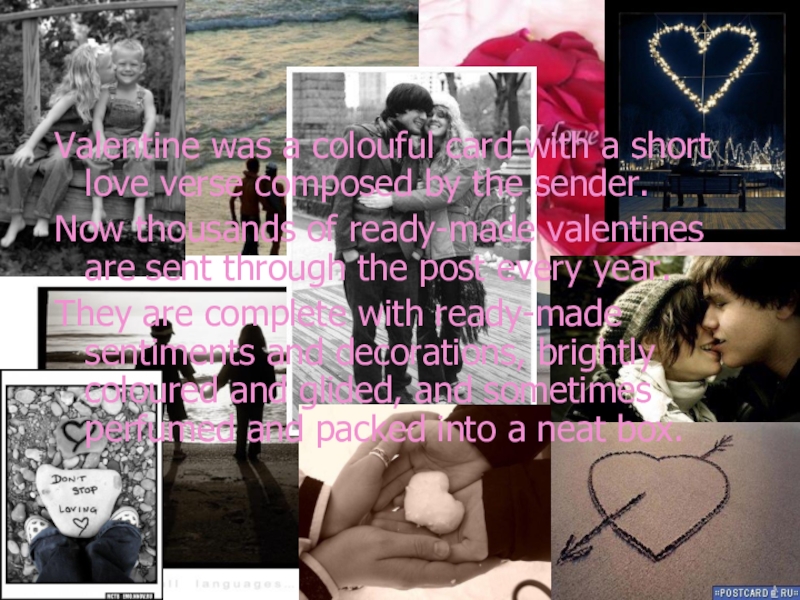 Слайд 13Valentine was a colouful card with a short love verse composed
