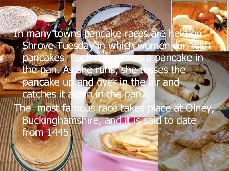 Слайд 16In many towns pancake races are held on Shrove Tuesday in