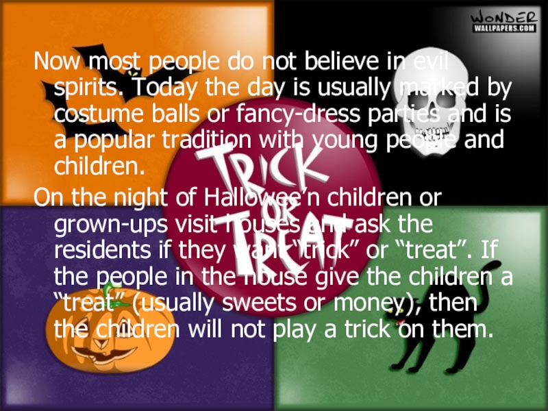 Слайд 24Now most people do not believe in evil spirits. Today the