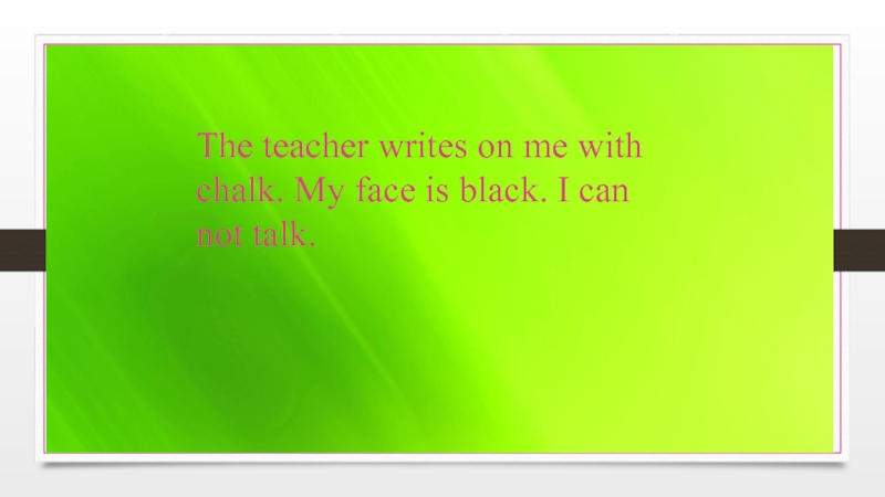 Слайд 21The teacher writes on me with chalk. My face is black.