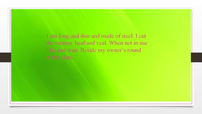 I am long and thin and made of steel. I cut the mutton, beaf and veal. When