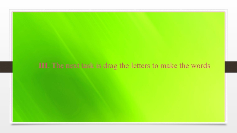 Слайд 18ІІІ. The next task is drag the letters to make the