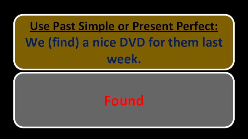 Use Past Simple or Present Perfect: We (find) a nice DVD for them last week.Found