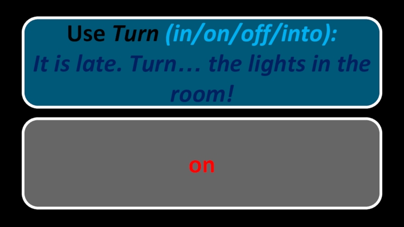 Слайд 20Use Turn(in/on/off/into): Turn… the TV
