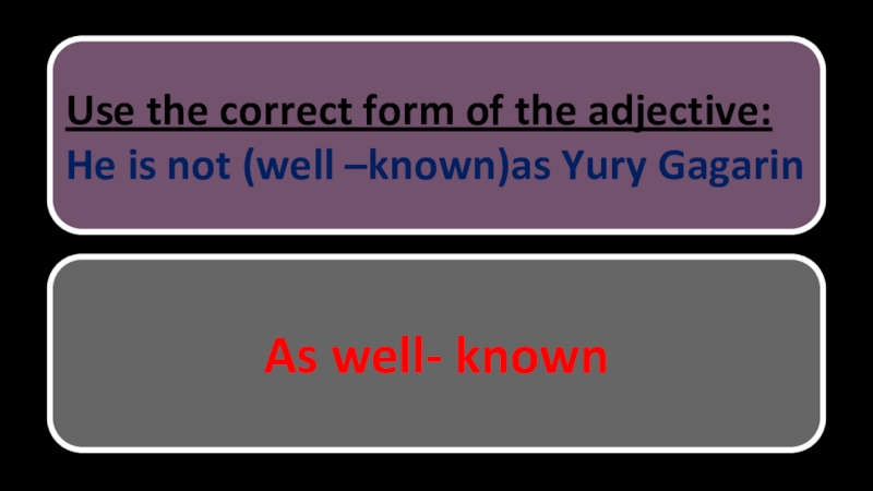 Use the correct form of the adjective:He is not (well –known)as Yury GagarinAs well- known